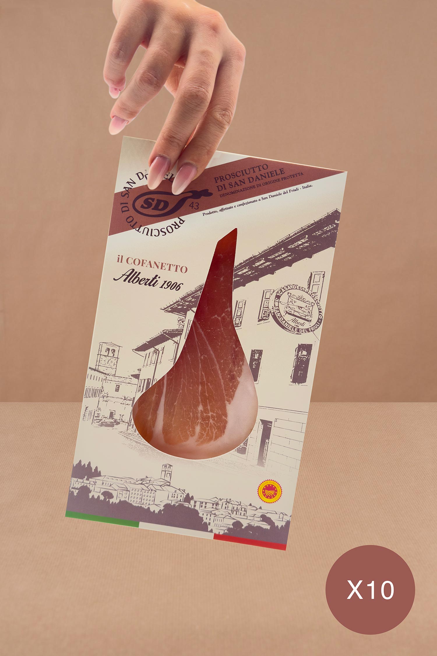 „Il Cofanetto“ Alberti 1906 geschnittener San-Daniele-Schinken