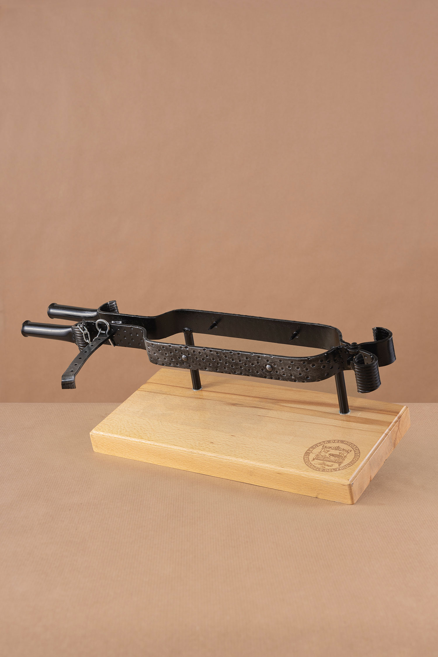 Il s’agit d’un serre-jambon très stable en fer forgé avec un socle en bois de hêtre.