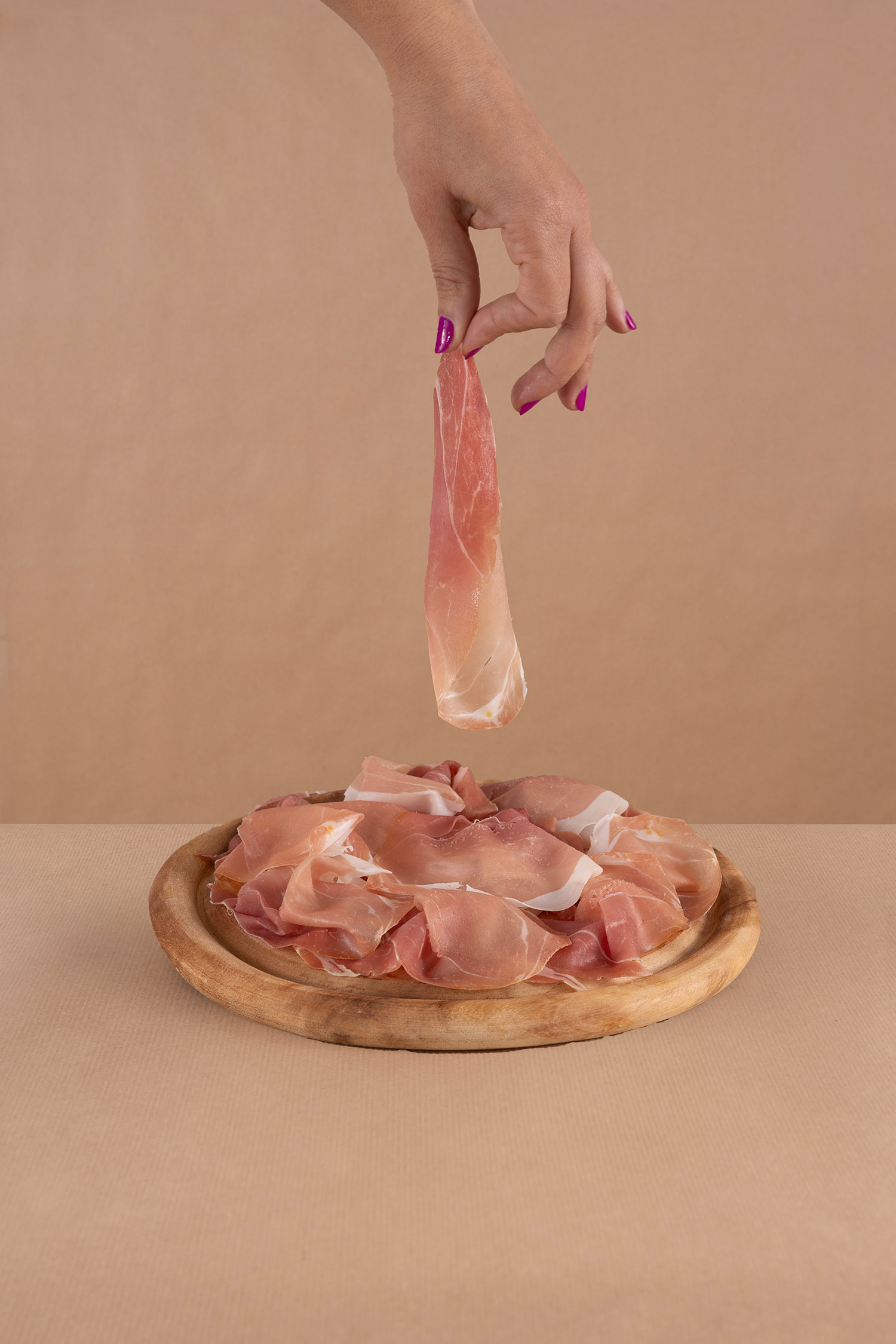 La Noce è la parte più saporita del prosciutto, tagliata a filo d’osso, tipicamente magra e di facile taglio anche a coltello grazie alla sua ridotta marezzatura.